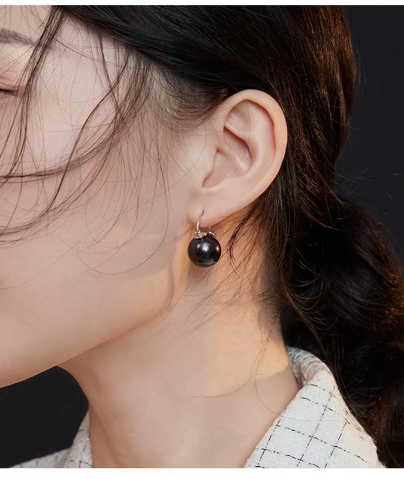 Black Shell Pearl Dangle Earrings E0540