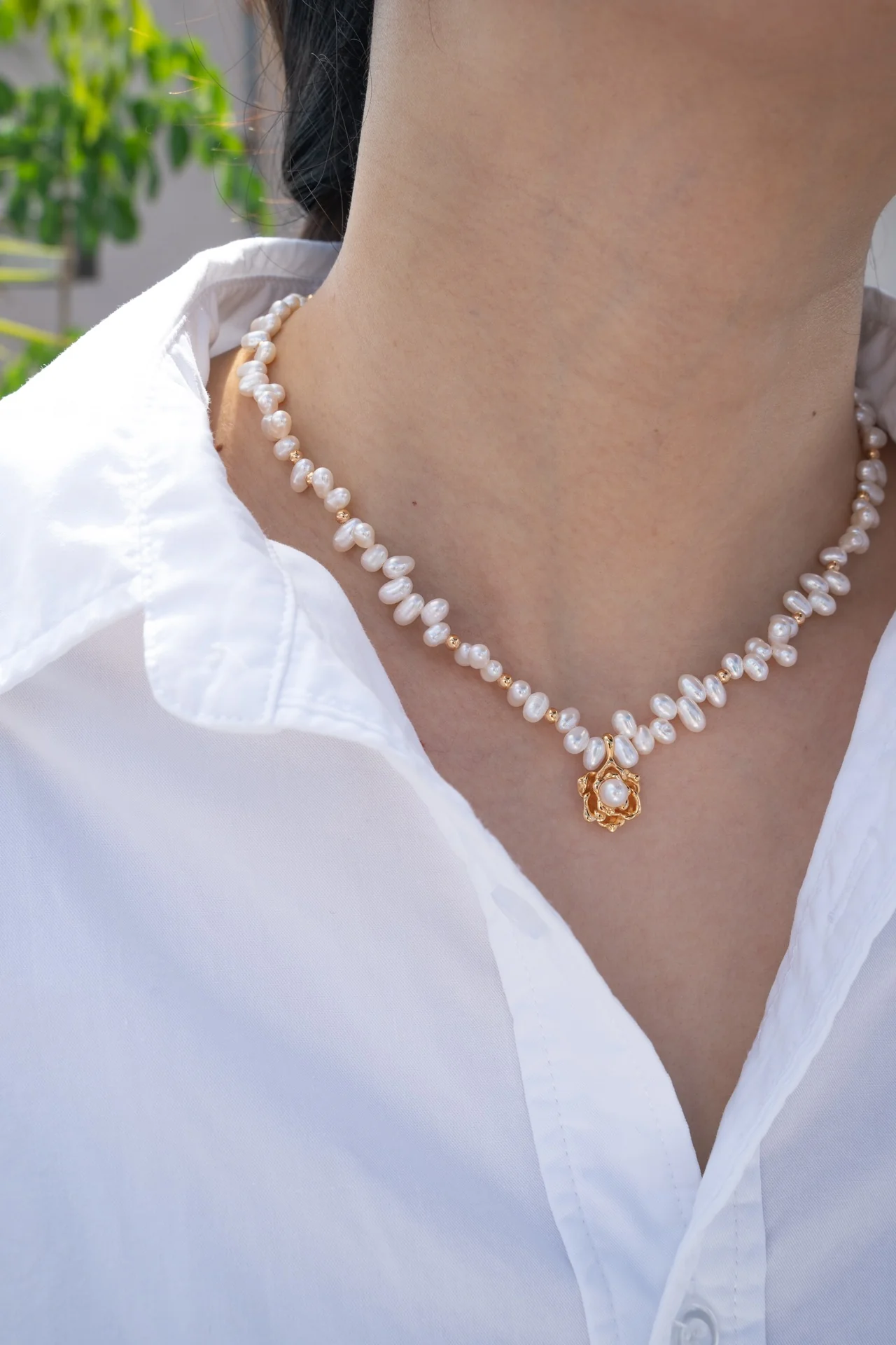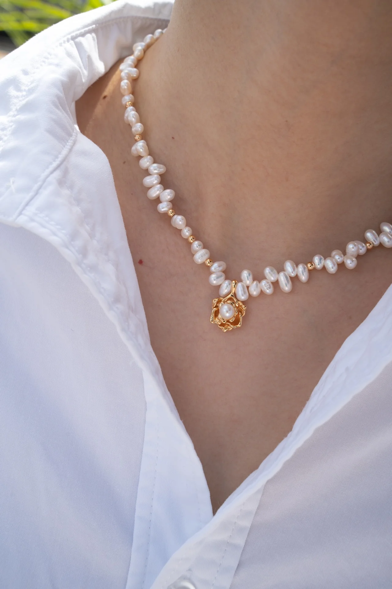 Camellia Vintage Pearl Necklace