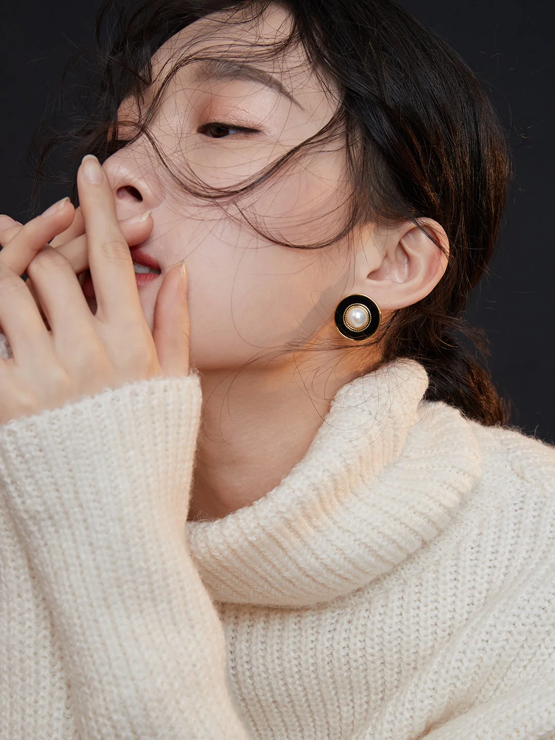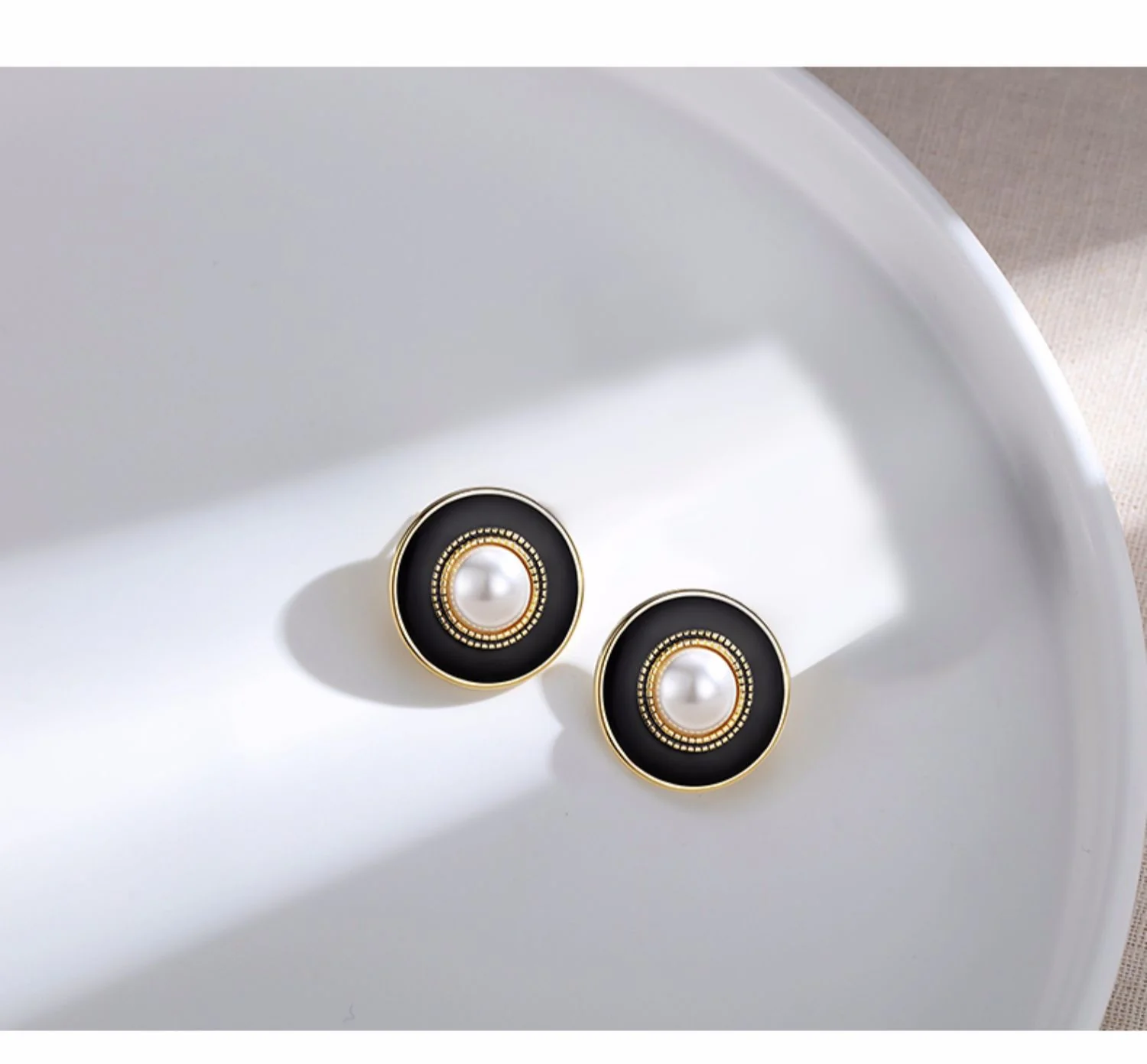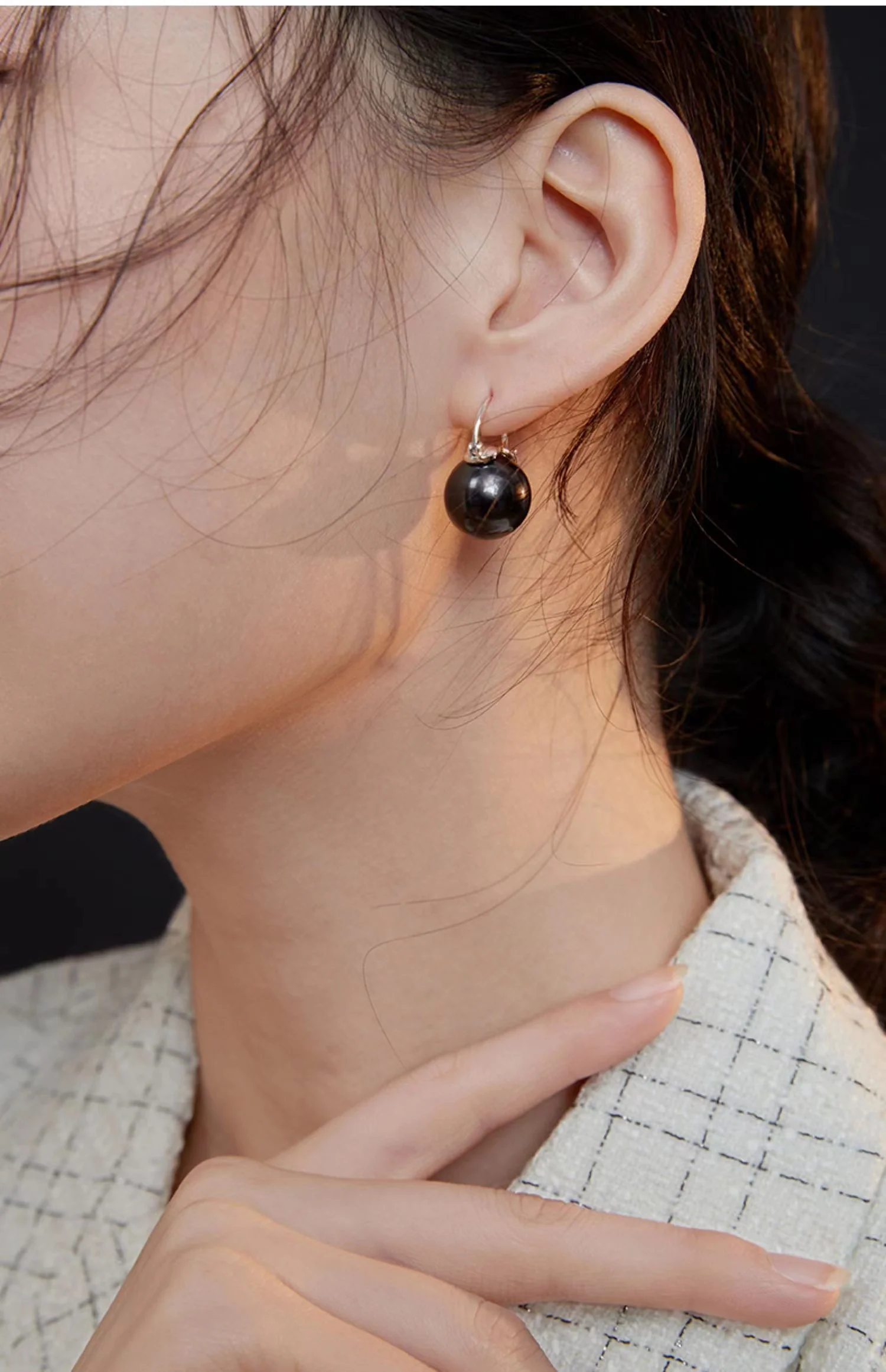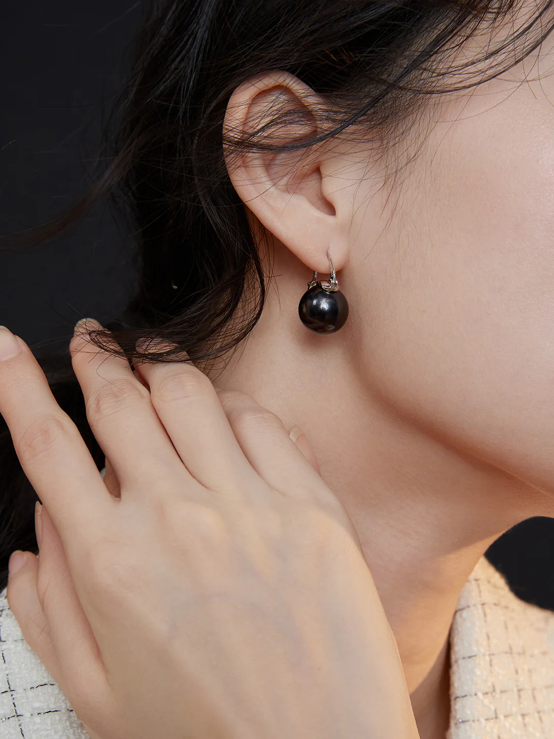 Black Drip Glaze Shell Pearl Earrings E0559
