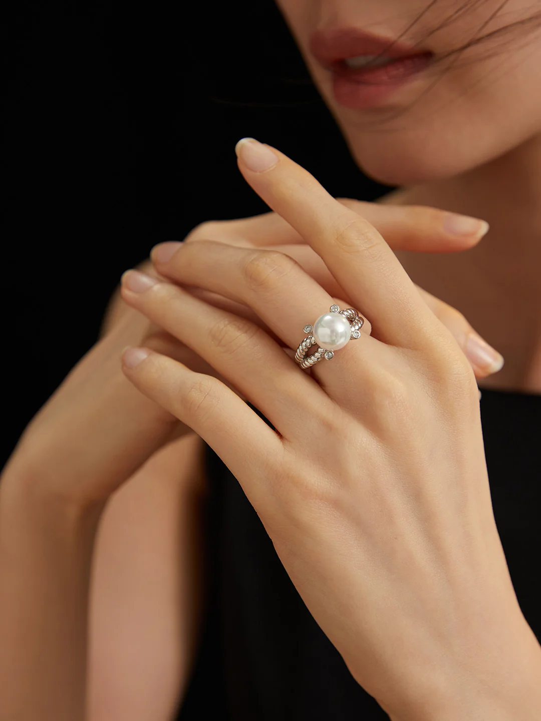 J0056Shell Pearl Adjustable Open Ring J0056