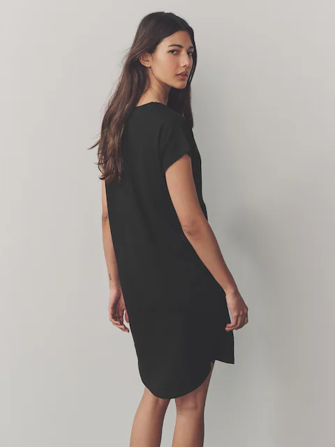 Black 100% Cotton Cap Sleeve V-Neck Mini Dress