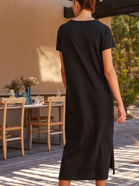Black 100% Cotton Twist Short Sleeved T-Shirt Summer Dress