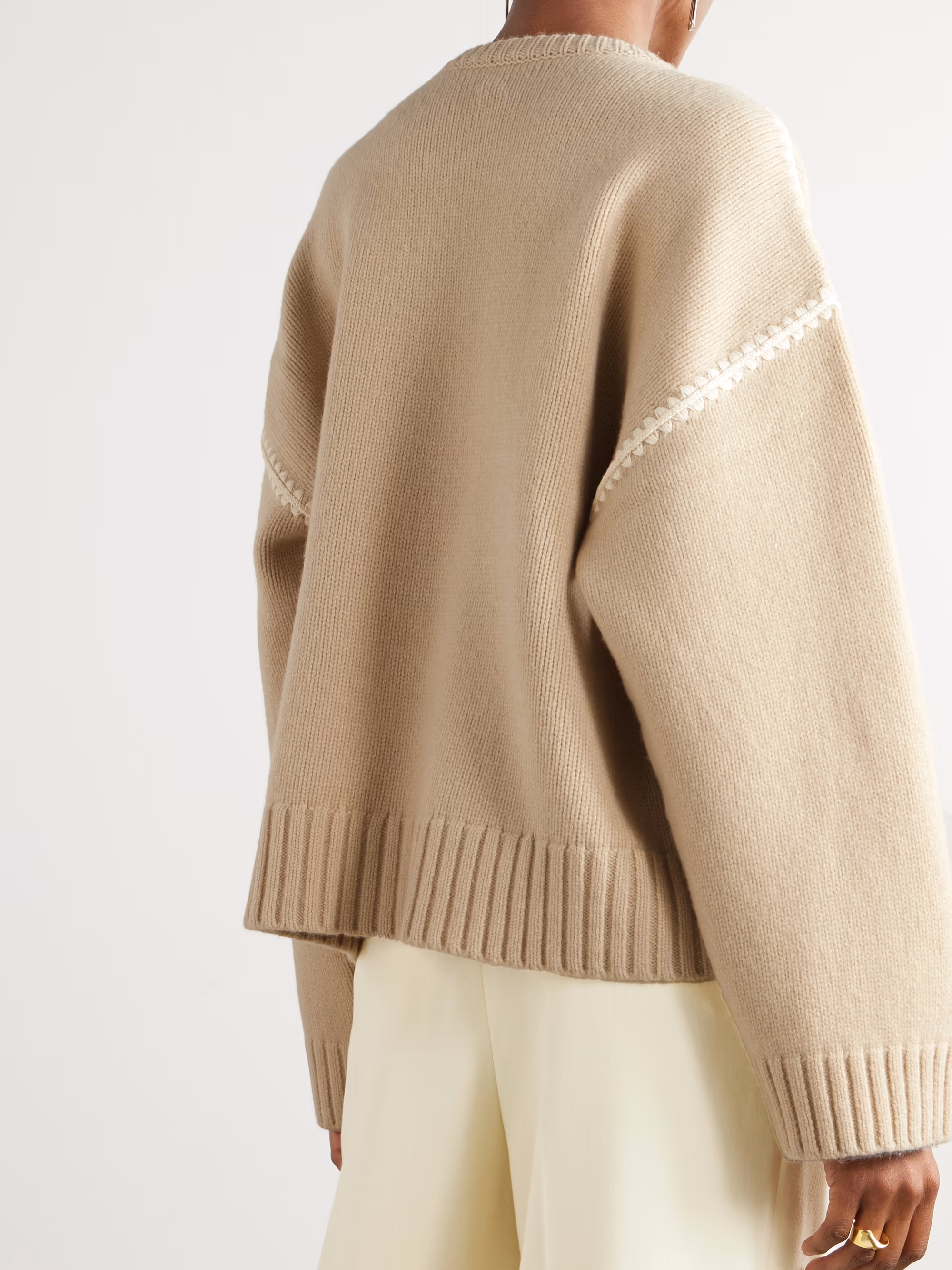 Oversized Embroidered Wool And Cashmere-Blend Sweater