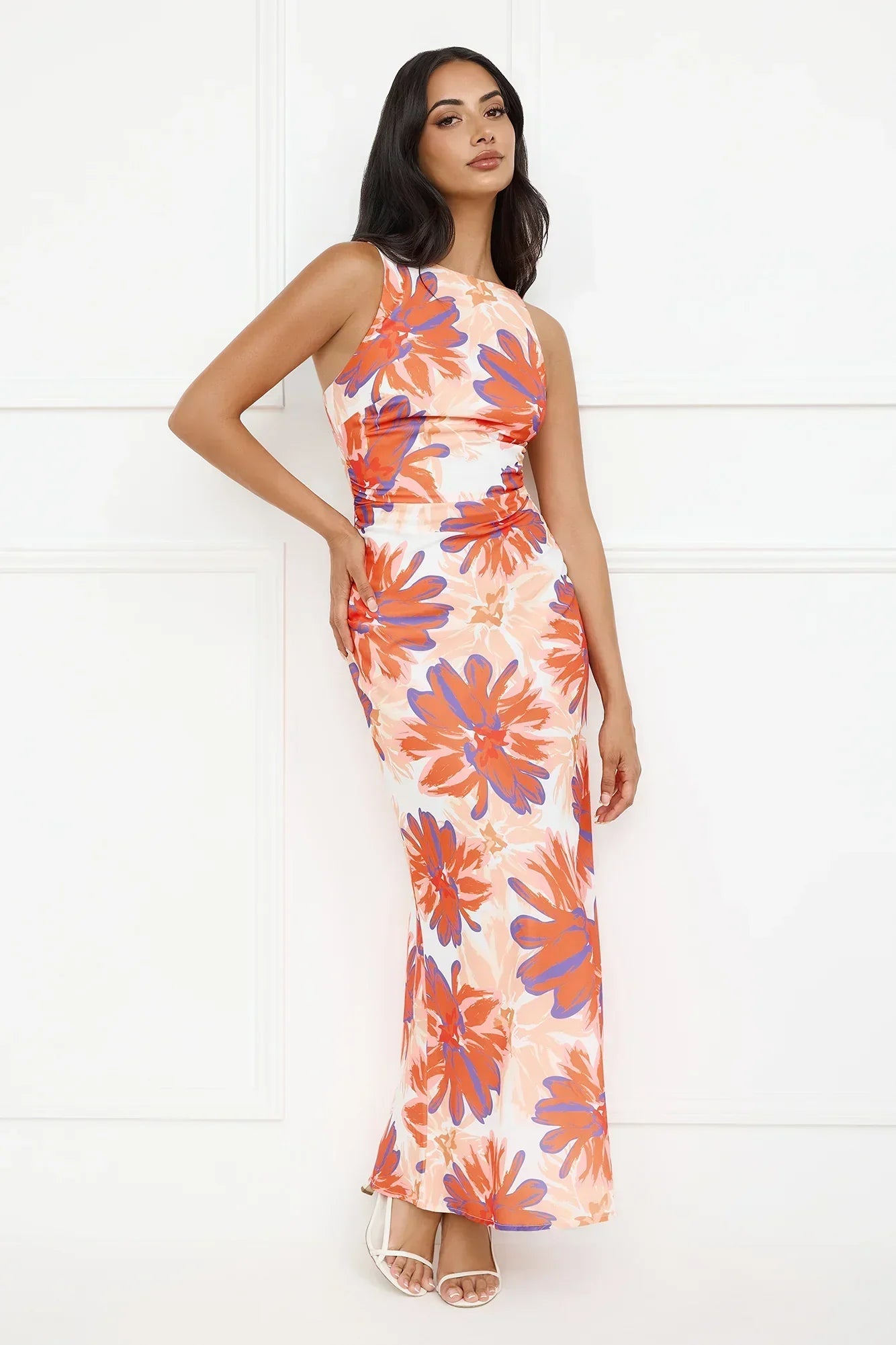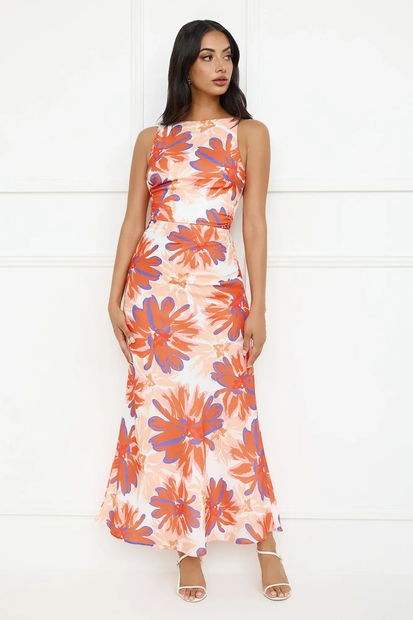 another style within 30 days of receiving your order.Bring the heat in the Peach Fever Maxi Dress, featuring a vibrant print, a breezy maxi silhouette, and a statement-open elastic back for the perfect mix of comfort and spice! Style with heels.