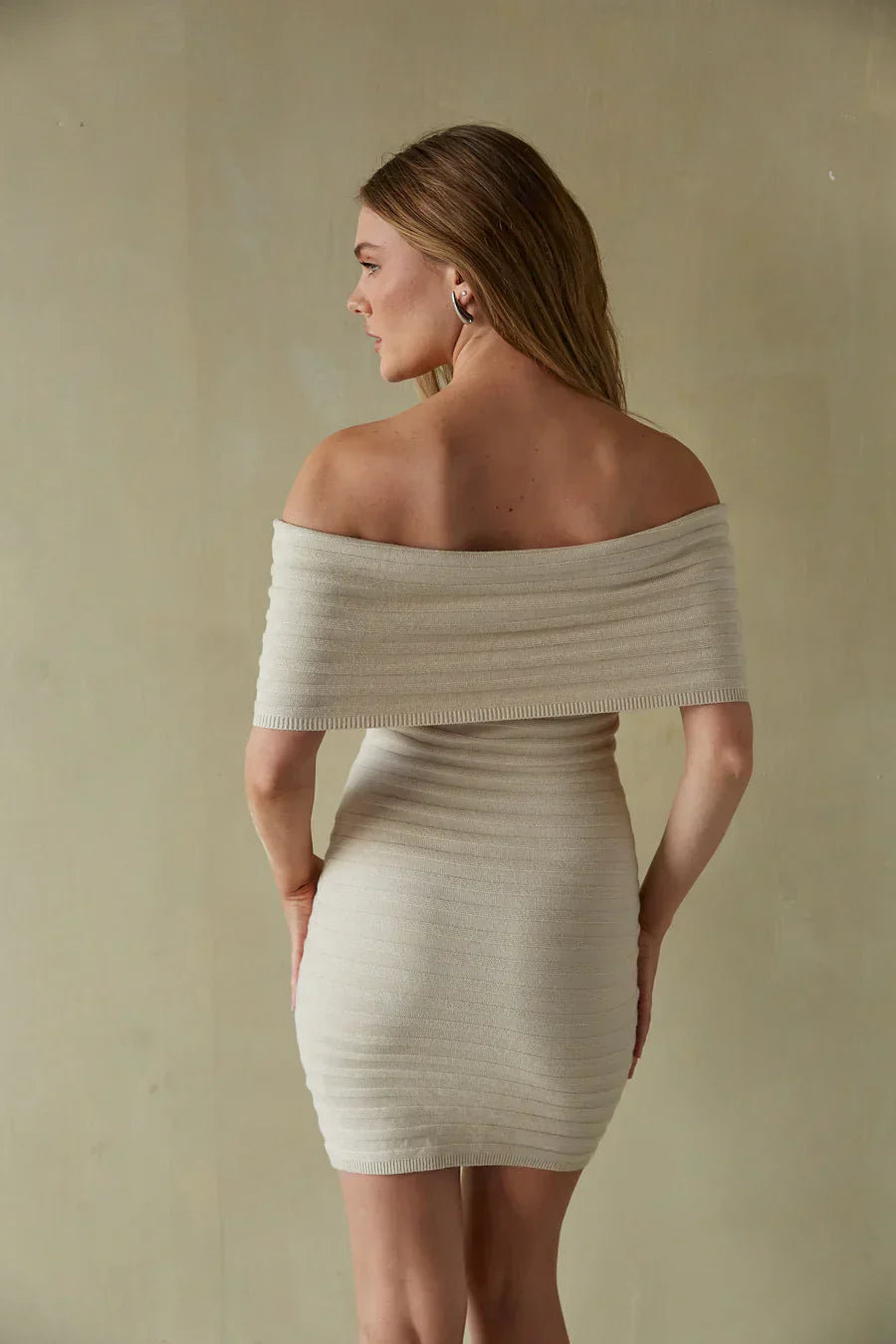 another style within 30 days of receiving your order.Stay cozy and cute in the all new Stassi Foldover Bodycon Mini Dress. This perfect sweater dress features an off the shoulder neckline, foldover bodice and sleeves, and bandage bodycon fit! Available in Black and Vanilla; to complete the look!