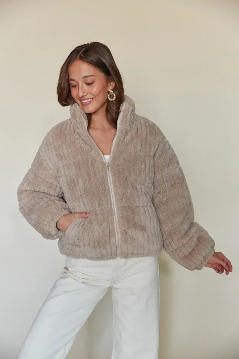 another style within 30 days of receiving your order.'Tis the season to stay toasty and no better way than with the Winnie Plush Puffer Jacket! This cozy jacket is made of a soft plush material and features a collared neckline, zip front, double front pockets, and an adjustable drawstring hem. Pair with a cute pair of for the perfect winter look!